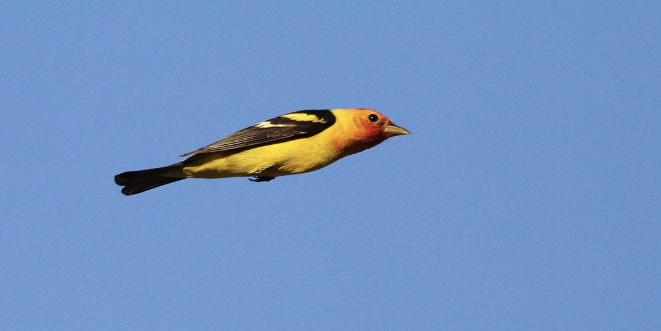 PHOTO: Western Tanager (Piranga ludoviciana) in flight past Bear Divide. Photo by beardivide.org